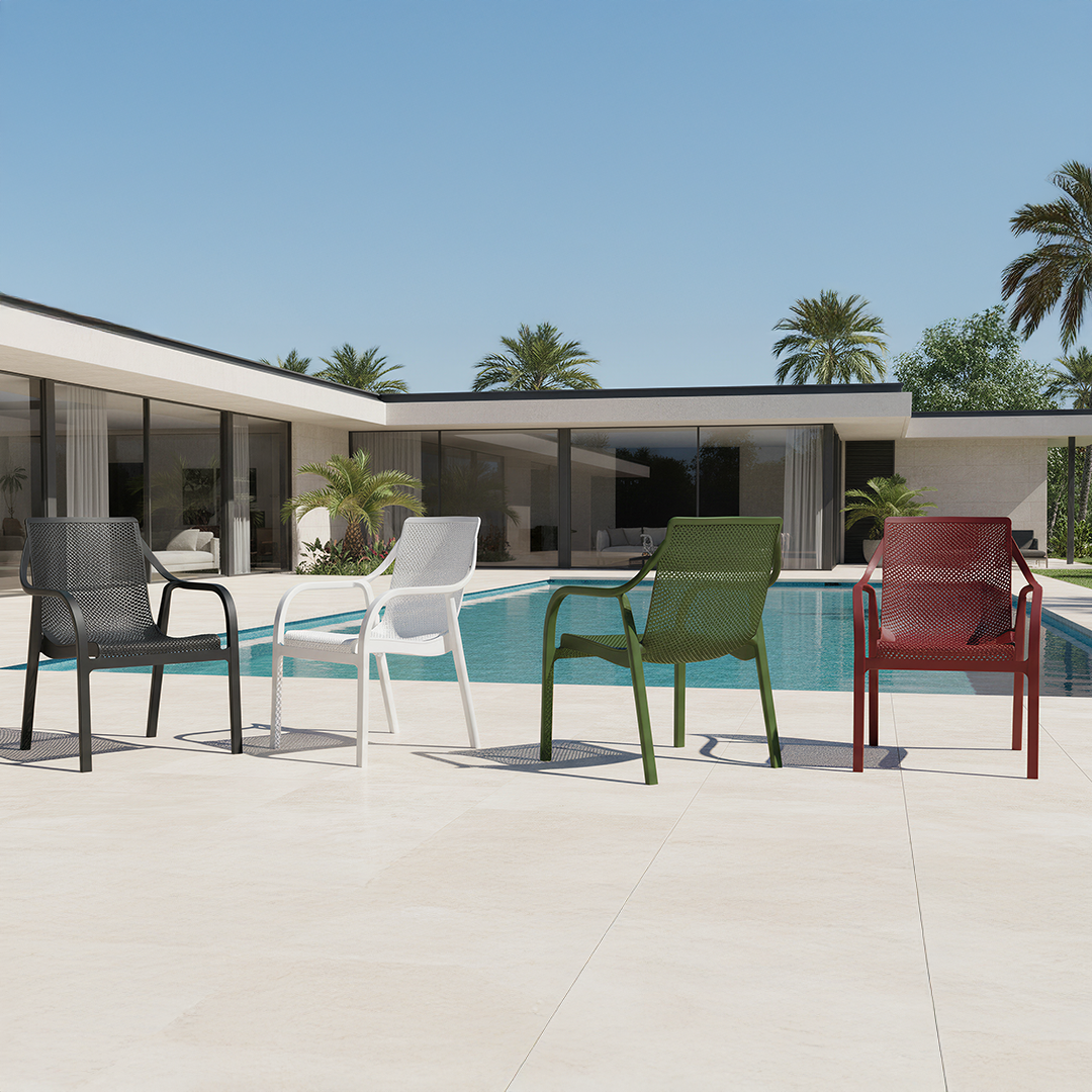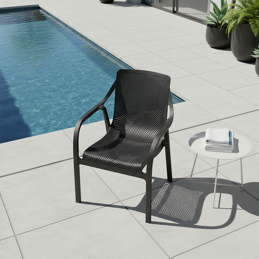 Teraslarınızda ve havuz başlarında konforu yeniden tanımlayan Madrid koltuk sizlerle. Ergonomik yapısı ve delikli tasarımı sayesinde hava geçirgenliği sağlayarak sıcak havalarda ferah bir oturum sunar. Şıklığı ve rahatlığı bir arada buluşturan Madrid koltuk, açık alanlarınıza hem estetik hem de konforlu bir dokunuş katar.